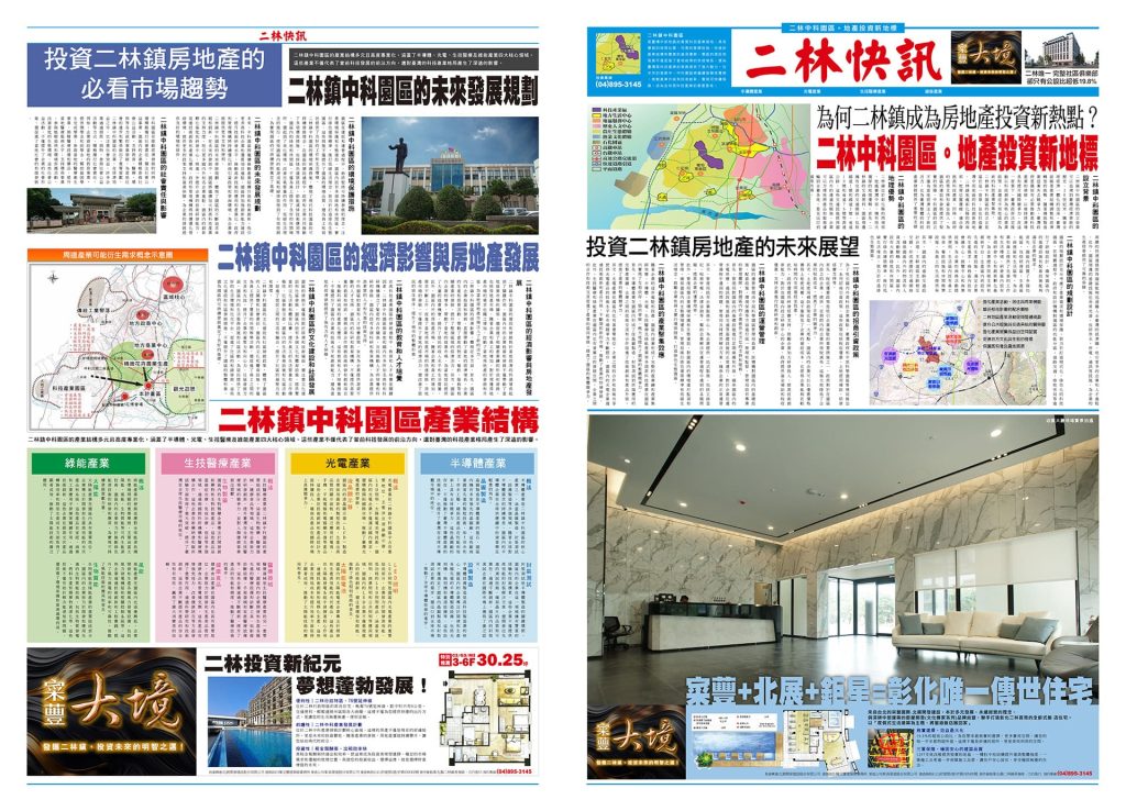 打造彰化二林首見的全齡式飯店住宅「寀蘴大境」。看準中科二林園區積極招商,創造工作機會,鄉鎮的經濟與生活型態即將轉變,以「度假式生活建築為主題,將星級飯店搬回家」為核心量身打造「寀蘴大境」,全案206戶,規劃3~4房,30~61坪,另規劃2戶精品店面。