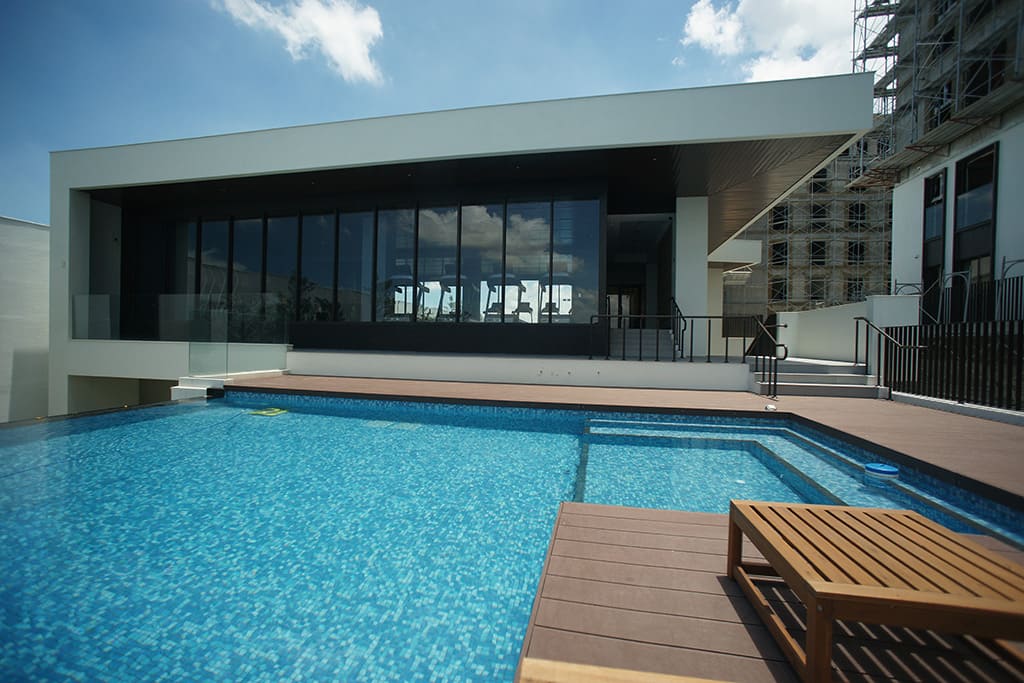 「寀蘴大境」採用星級酒店式管理,搭配千坪庭園散步道、無邊際泳池、健身房與多功能親子活動空間,符合全齡化的居住需求,讓住戶感受下班就去度假,回家就是享受。